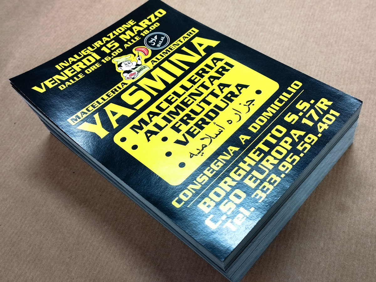 stampiamo etichette (in qualsiasi forma e quantità), adesivi, striscioni, insegne, volantini, depliants, manifesti, locandine, biglietti da visita, bandiere...